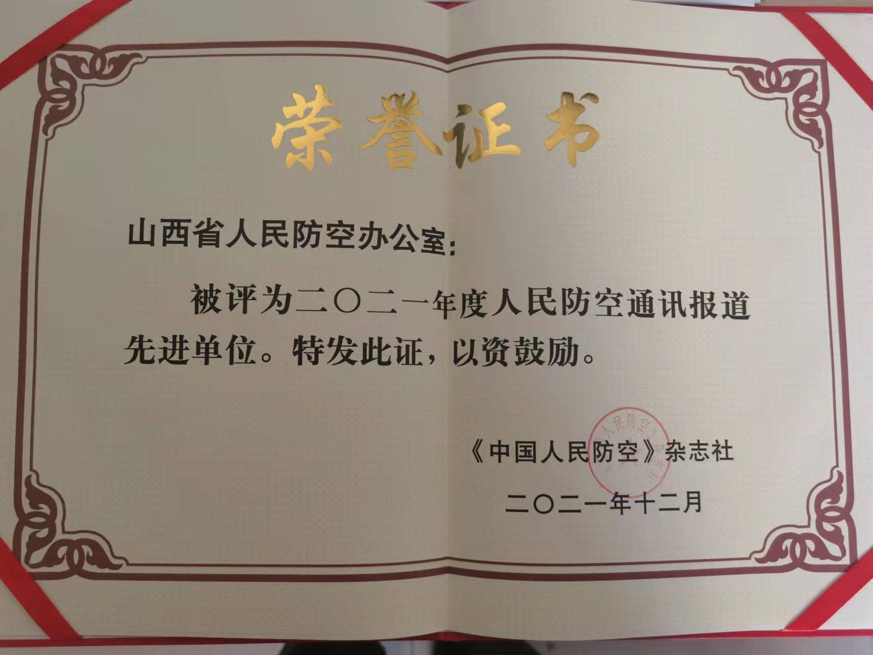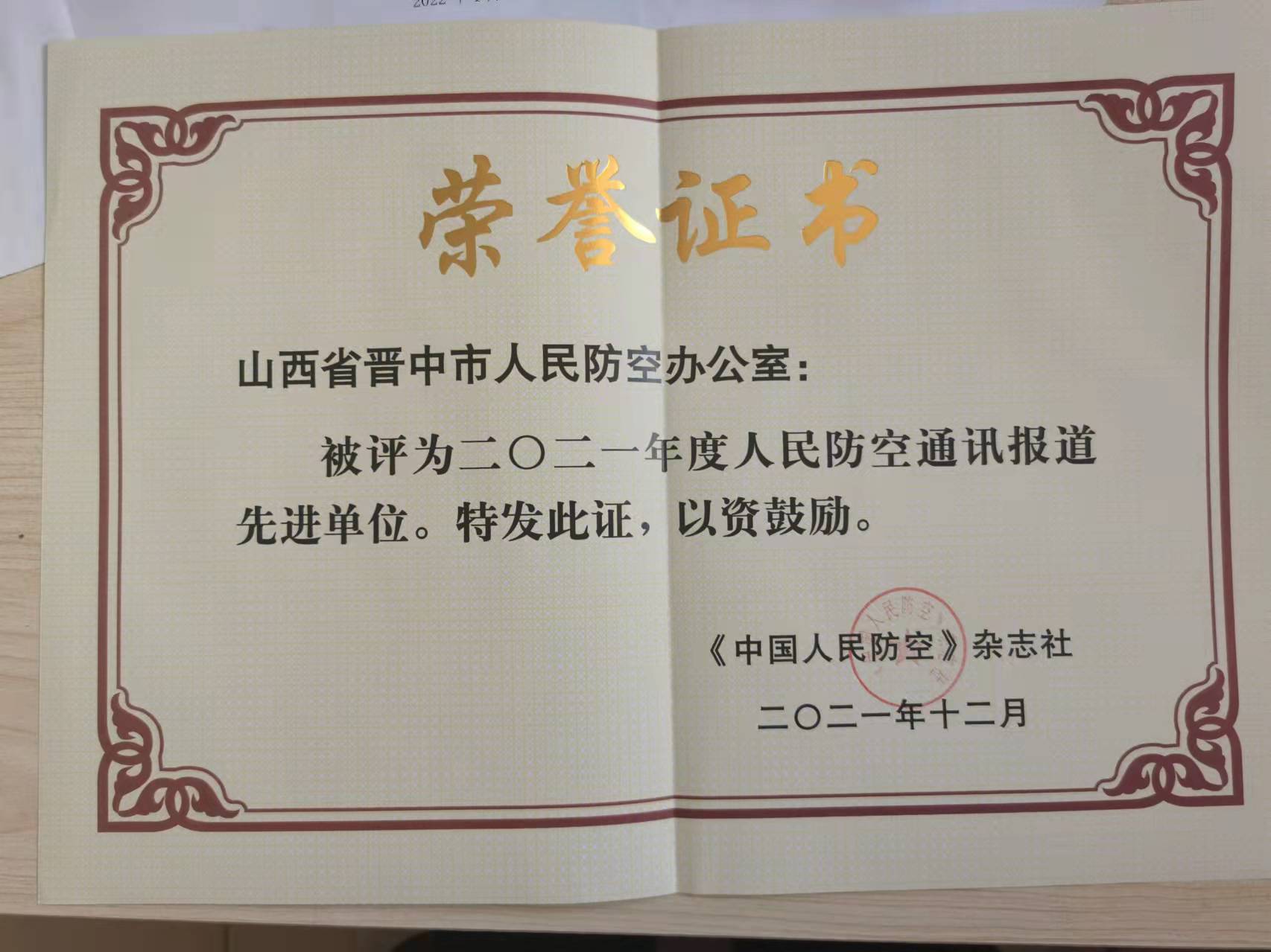 山西省人防办、晋中市人防办获得《中国人民防空》先进单位荣誉