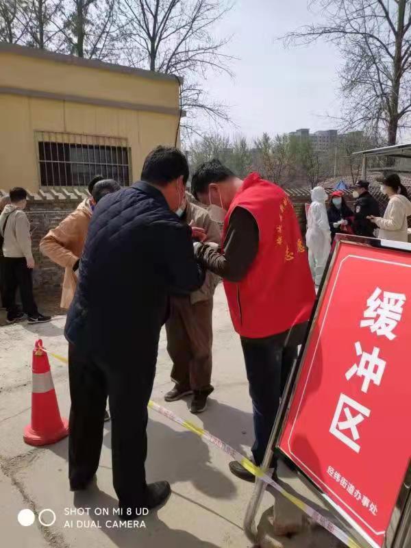 4月10日,榆次区人防办副科级干部籍霞同志带队10余人赴经纬街道二社区“周末不休”坚守“疫”线,张贴入户宣传页并挨家挨户摸排登记,辛勤付出、默默坚守在基层第一线。