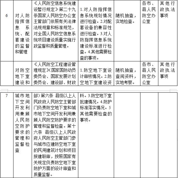 山西省人民防空办公室其他行政执法事项随机抽查清单