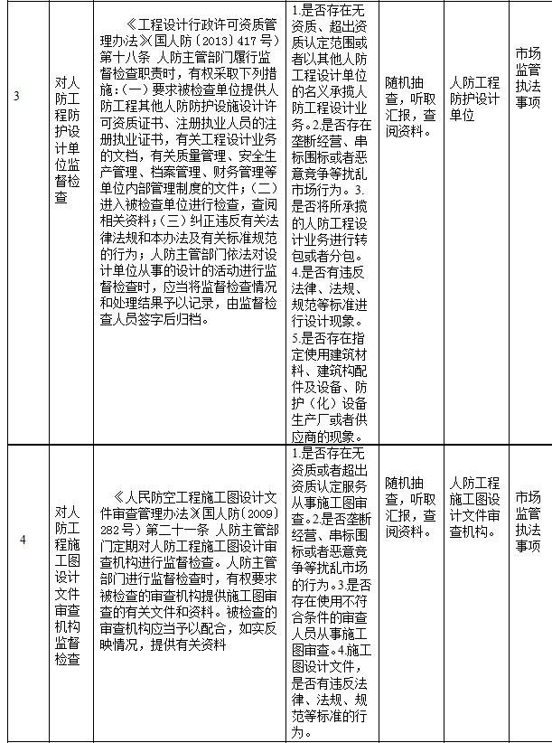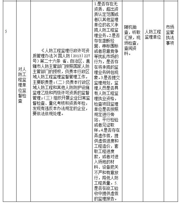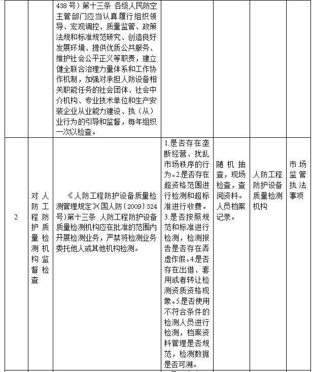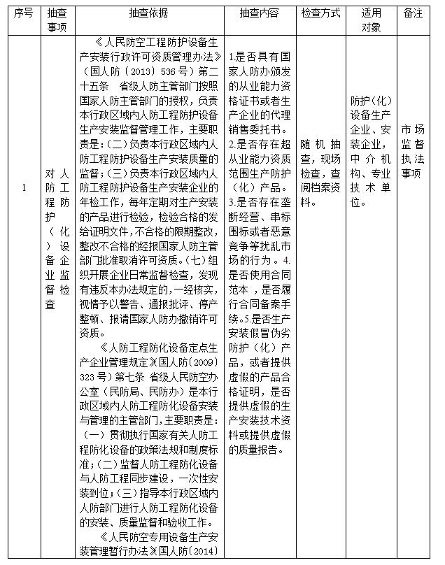 山西省人民防空办公室市场监管执法事项随机抽查清单