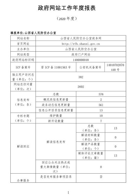 山西省人防办2020年度政府网站工作年度报表