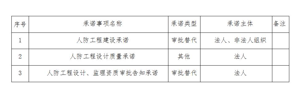 山西省人民防空办公室实施信用承诺应用事项目录