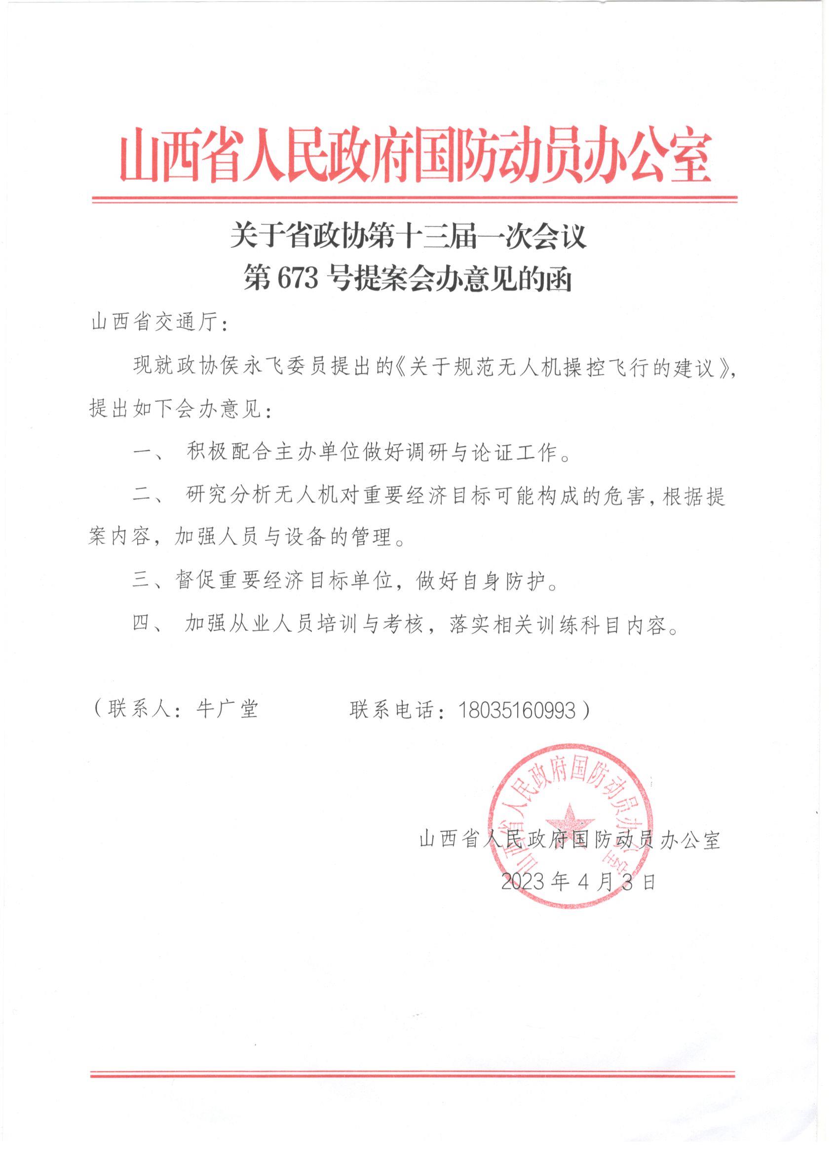 关于省政协第十三届一次会议第673号提案会办意见的函